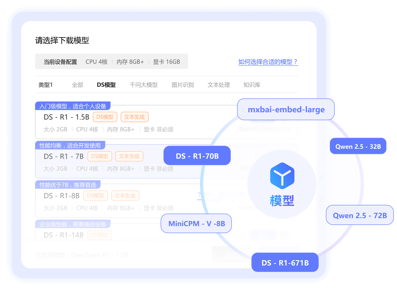 多种模型可供选择,可根据电脑配置选择合适的模型,即可开启对话!